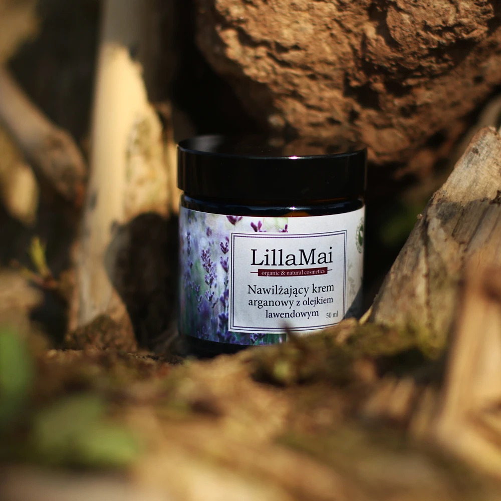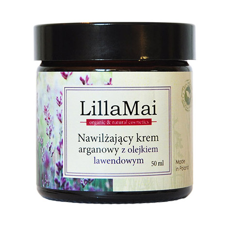 Nawilżający krem arganowy z olejkiem lawendowym – lekka formuła na bazie oleju arganowego, hydrolatu melisy i rumianku. Nawilża, wygładza i odżywia. Idealny pod makijaż i na lato. 100% naturalny, dla każdego rodzaju cery.