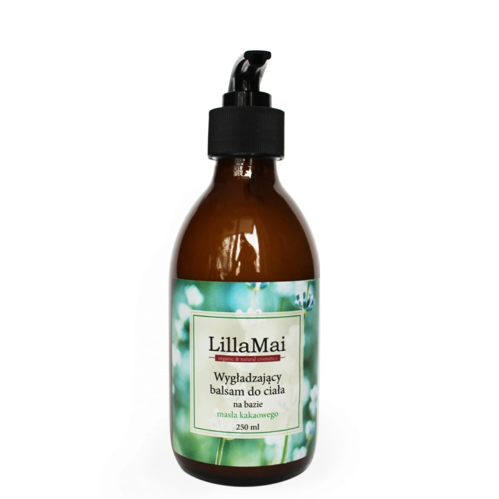 Podaruj swojej skórze codzienną dawkę luksusu i odżywienia. Wygładzający balsam do ciała od LillaMai to wyjątkowe połączenie nierafinowanego, zimnotłoczonego masła kakaowego i oleju kokosowego, które intensywnie nawilżają, natłuszczają i wygładzają skórę, nadając jej miękkość i blask.